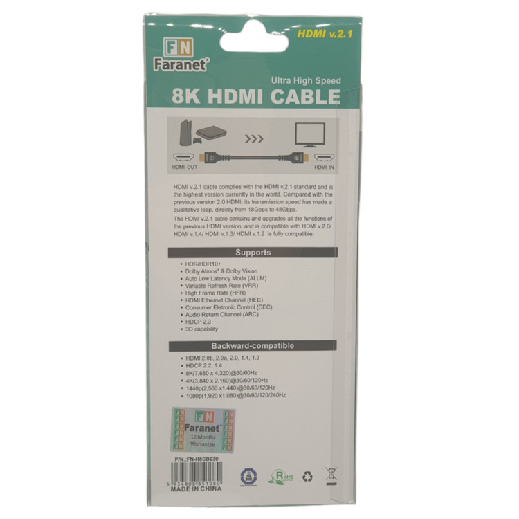 کابل HDMI فرانت از بهترین کابل های صوتی تصویری می باشد این کابل از فرمت 8K پشتیبانی کرده و جنس آن کنفی درجه یک می باشد سوکت های این کابل تمام فلزی بوده و از استحکام قابل توجهی برخوردار است. مناسب برای بازی ها و فیلم های با فرمت 8K می باشد.