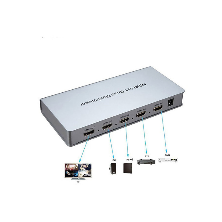 رزولوشن 1080p@60Hz | منبع تغذیه آداپتور 2A-5V | تعداد درگاه های ورودی 4 عدد | تعداد درگاه خروجی 1 عدد | امکان ارسال 4 تصویر به یک مانیتور به صورت همزمان | برد کارکرد: 30 متر | امکان بزرگنمایی تصویر منتخب | امکان پخش صدای تصویر