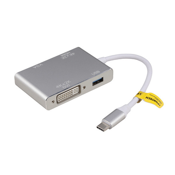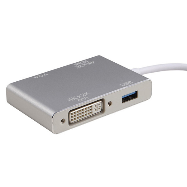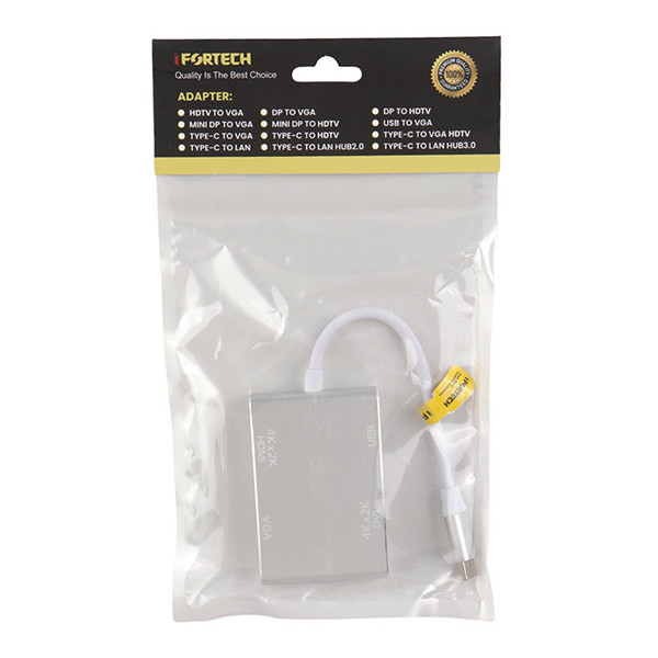 سایر توضیحات: رابط: USB-C | پورتهای خروجی: USB/HDMI/DVI/VGA | نسخه USB: نسخه 3.0 | رزولوشن اچ دی ای: 4K×2K | رزولوشن دی وی آی: 4K×2K | طول کابل: 10 سانتی متر | جنس بدنه: فلزی | روکش کابل: روکش پلاستیکی مقاوم در برابر کشش و خمیدگی