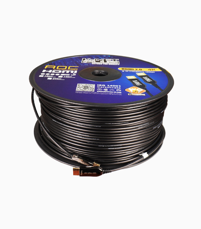 HDMI نوعی کابل است که قابلیت انتقال با کیفت بالا و تنها با استفاده از یک کابل را در اختیار کاربر قرار می دهد؛ برای آشنایی با کابل HDMI، انواع و کاربرد آن با ما همراه باشید. کابل HDMI و کاربرد آن چیست؟ HDMI مخفف کلمه High-Definition Multimedia Interface است؛ معنی لغوی آن در زبان فارسی رابط چند رسانهای اچ دی یا رابط چند رسانهای با کیفیت بالاست؛ این پورت برای اولین بار در سال 2003 به بازار عرضه شد و یکی از مهمترین کاربردهای کابل اچ دی ام آی انتقال دادهها از کامپیوتر و لپ تاپ به تلویزیون بدون کاهش کیفیت است. کابل اچ دی ام آی، در تکنولوژی امروزه کاربرد فراوانی دارد و در دستگاه های دیجیتال مانند تلویزیون با درجه وضوح بیشتر، دوربین های فیلم برداری پیشرفته به کار می رود. از ویژگیهای مهم و بارز کابل HDMI میتوان به موارد زیر اشاره نمود: قابلیت انتقال فایل به صورت غیر فشرده قابلیت انتقال فایل تصویری و صوتی دیجیتال به صورت هم زمان انتقال تصاویر با کیفیت بالا استفاده از یک پورت و کاهش تعداد کابلهای انتقال کابل HDMI کی نت پلاس طول 200 متر مدل KP-CHAOC2000 با قابلیت AOC جدیدترین بروزرسانی مشخصات HDMI را پیادهسازی میکند و از رزولوشن 4K و رفرش ریت 60 هرتز پشتیبانی میکند. فرمتهای HDR پویا هم پشتیبانی می شوند و پنهای باند را تا حداکثر 18 گیگابیت در ثانیه افزایش میدهد. با این حال مهمترین ویژگی این کابل، قابلیت AOC است قابلیت AOC چیست و چه کارکردی دارد؟ AOC یا Active Optical Cable به معنای کابل نوری فعال نوعی از کابل است که سیگنالهای الکتریکی را به نور تبدیل میکند. از این نوع کابل معمولاً در مراکزی که از حجم بالایی از دادهها در آنها ذخیره و منتقل میشود، استفاده میشود. این نوع کابلها کارایی، پایداری و سرعت بالای انتقال دادهها را فراهم میکنند.