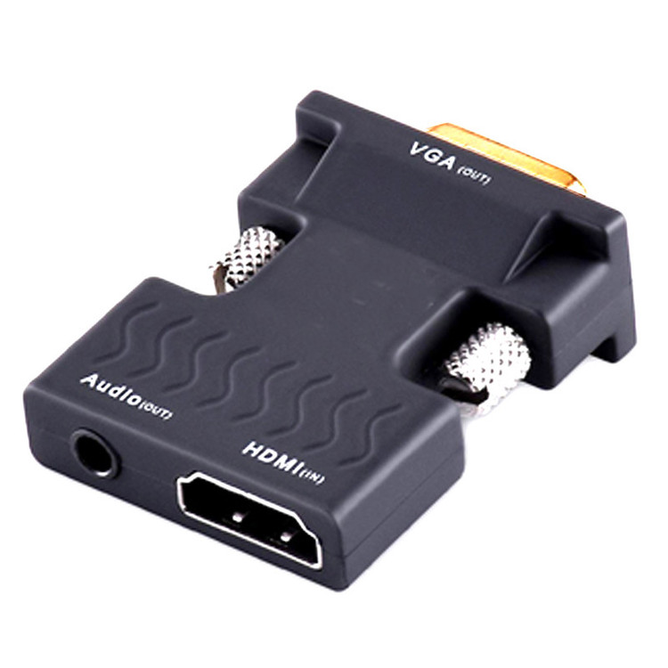 تبدیل HDMI به VGA و 3.5mm Audio با کابل صدا به طول 20 سانتی متر که با نام تجاری HDMI Female to VGA Male 3.5mm Audio Output Converter Connector Adapter در بازار شناخته می شود یکی از تولیدات شناخته شده در بازار می باشد. با استفاده از این مبدل شما می توانید تصاویری را که با استفاده از کابل HDMI انتقال می دهید را، به پورت های نری VGA و جک 3.5 میلی متری صدا تبدیل کنید و به نمایشگر یا پروژکتوری که دارای پوت VGA باشد متصل کنیدواین محصول امکاناتی که دارد دارای پورت HDMI مادگی می باشد و ویژگی که این مبدل دارد برای مانیتور هایی که پورت HDMI ندارد خیلی مناسب است با این تبدیل میتوان مانیتور vga خود را تبدیل به یک پورت HDMI دار کرد.