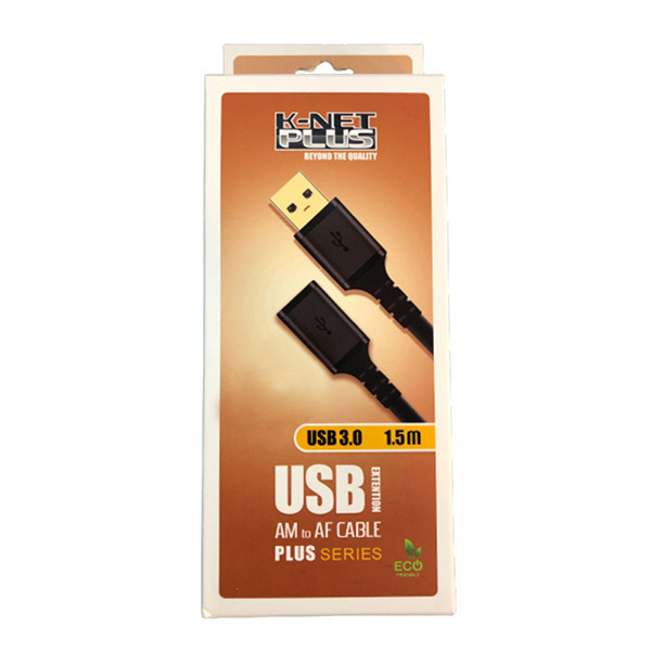 کابل افزایش طول USB3.0 کی نت پلاس دارای طول 1.5 مترمی باشد از این کابل برای ارتقا انواع کابل یو اس بی با سرعت بالا استفاده می شود. از لحاظ مشخصات ظاهری دارای پوششی با روکش از جنس (PVC) و همچنین کانکتوری از جنس آلومینیوم طلایی است. و ضمن تجهیز به قابلیت ضد نویز، پورت ورودی (USB AM) و خروجی (USB AF) و محافظ داخلی با پوششی از جنس شیلد و فویل، قادر است از تصاویری با وضوح بالا پشتیبانی کامل کند. ناگفته نماند که زاویه سوکت این کابل بصورت استاندارد طراحی شده و علاوه بر آن جنس سر کانکتور این کابل از نوع آلومینیوم (GOLD PLATED) می باشد و برای افزایش طول کابل نوع (USB Type C) بسیار کاربردی است.