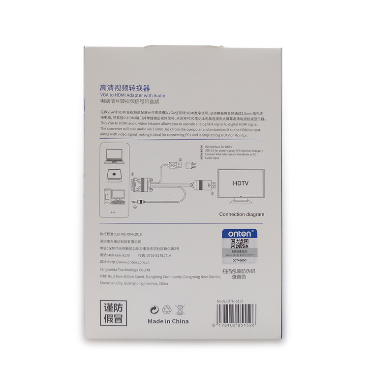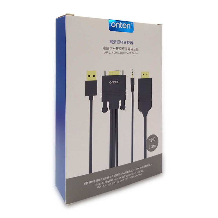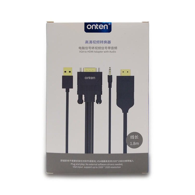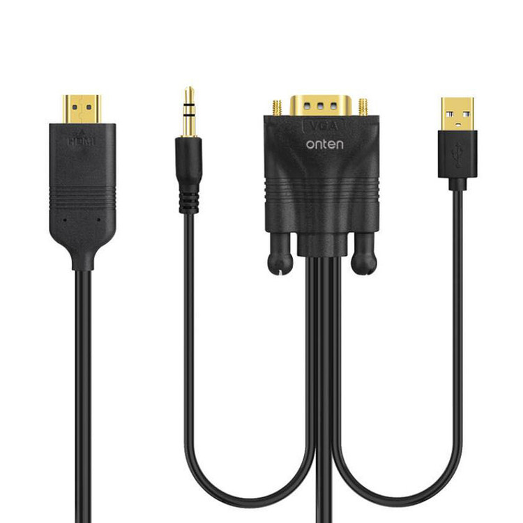 تبدیل VGA به HDMI اونتن مدل OTN-5152 امکان تبدیل سیگانل آنالوگ VGA به سیگانل دیجیتال HDMI را فراهم مینماید. همچنین بر روی این تبدیل یک کانکتور 3.5 میلیمتری AUX تعبیه شده که با اتصال آن به خروجی صدای دستگاه خود علاوه بر تصویر، صدای منبع نیز بر روی خروجی HDMI انتقال داده میشود. همچنین این تبدیل دارای کابل USB به منظور تامین ولتاژ مورد نیاز دستگاه بوده و کاربرد این تبدیل به دلیل ماهیت پلاگ اند پلی بودن و سادگی کاربرد، آنرا به ابزاری مناسب جهت ارائه مطالب آموزشی و همچنین انتقال تصویر از لپتاب و یا کامپیوتر به دیتا پروژکتور و صفحه نمایش های HD بزرگ دارای درگاه ورودی HDMI می باشند تبدیل کرده است. لازم به ذکر است این مبدل بصورت برعکس کار نمیکند.