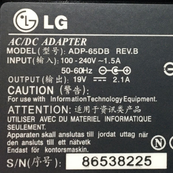 ولتاژ ورودی : 100-240 ولت xxx شدت جریان ورودی : 1.5 آمپر xxx ولتاژ خروجی : 19 ولت xxx شدت جریان خروجی : 2.1 آمپر xxx سازگار با مانیتورهای ال جی