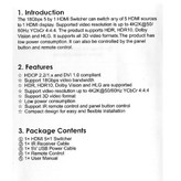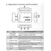 با استفاده از این دستگاه می توانید یک مانیتور با کابل HDMI را به سوئیچ متصل کرده و تا پنج کیس از مانیتور مورد نظر استفاده کنند. با استفاده از این دستگاه می توانید چندین دستگاه با پورت HDMI مانند دوربین ، کامپیوتر ، لپ تاپ ، کنسول بازی ، DVD و ... را به سوئیچ متصل و خروجی را در یک صفحه نمایش با پورت HDMI مشاهده کنید . برای تماشای هر دستگاه باید بین آنها سوئیچ یا جابجایی انجام بدهید . برای جا به جایی تصاویر از کلید روی سوئیچ باید استفاده کنید البته ریموت هم دارد که استفاده را خیلی راحتر می کند . توسط این دستگاه شما می توانید پنج ورودی تصویر HDMI را از کامپیوتر ، لپ تاپ ، XBOX ، DVR ، DVD ، دوربین و ... به یک خروجی تصویر مانند مانیتور ، تلویزیون ، ویدیو پروژکتور و ... انتقال و نمایش دهید . این دستگاه می تواند با بالاترین کیفیت FULL HD 2160P پنج عدد ورودی HDMI را دریافت کرده و تمام آنها را به صورت یک خروجی پورت HDMI تبدیل نماید.