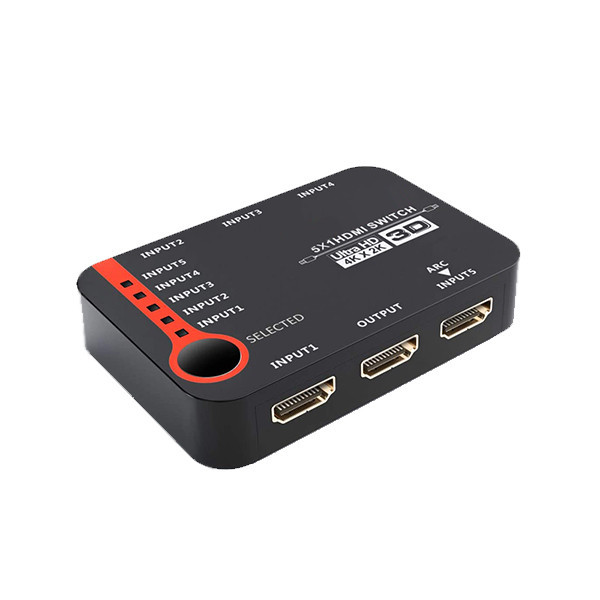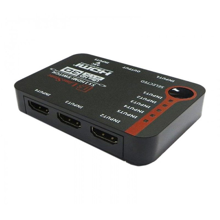 سوییچ 5 پورت HDMI برند لایمستون مدل LS-HS0501 با قابلیت انتقال تصاویر 4K که به کمک آن میتوان 5 دستگاه که دارای خروجی HDMI هستند مانند انواع Mini PC ها، XBOX، PS4، سینمای خانگی و… را به یک نمایشگر با ورودی HDMI مانند تلویزیون متصل کرد.با این سوییچ میتوان بدون تعویض کابل از دستگاههای مختلف مانند گیرنده دیجیتال، سینمای خانگی، کنسول بازی، دوربین و … بر روی یک نمایشگر استفاده نمود.این سوییچ HDMI گزینه مناسبی است برای تلویزیونها و مانیتورهایی که تنها یک یا دو ورودی HDMI دارند و یا دیگر پورتهای HDMI آن مشغول است. داشتن کنترل از راه دور و همچنین قابلیت انتقال تصاویر 3 بعدی از دیگر مزیتهای این سوییچ 5 پورت HDMI میباشد.
