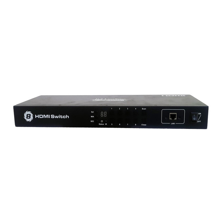 سوییچ 8 پورت HDMI لایمستون وظیفه تبدیل هشت پورت اچ دی ام ای به یک پورت اچ دی ام ای را دارد. این سوئیج از تصاویر با رزولوشن 4K 3840×2160@30Hz و تصاویر 3D پشتیبانی می کند. تمامی رابط های HDMI این سوییچ از نسخه 1.4 می باشند. برای سوییچ بین تصاویر 2 راه وجود دارد. یکی استفاده از دکمه های روی دستگاه و دیگری استفاده از ریموت کنترل. برخورداری از کنترل استفاده از این سوییچ 8 پورت را بسیار راحت کرده و شما می توانید آن را در محیط های مختلف نصب کرده و از آن استفاده کنید. همچنین یک رابط LAN و سریال برای این سوییچر HD در نظر گرفته شده که برای اتصال به کامپیوتر و کنترل آن توسط نرم افزار استفاده می شود . رابط LAN از HDBaseT پشتیبانی نمی کند. تمامی کانکتورهای HDMI در پشت بدنه طراحی شده است که از جنس مناسب طراحی و ساخته شده است. برای سوییچ بین تصاویر 2 راه وجود دارد. یکی استفاده از دکمه های روی دستگاه و دیگری استفاده از ریموت کنترل. برخورداری از کنترل استفاده از این سوییچ 8 پورت را بسیار راحت کرده و شما می توانید آن را در محیط های مختلف نصب کرده و از آن استفاده کنید. بدنه از جنس فلز می باشد و خنک کنندگی و مقاومت مناسبی دارد. در جلوی بدنه دکمه های خاموش/روشن ، دکمه های سوییچ بین تصاویر و دکمه های مربوط به تنظیمات قرار دارد. یک صفحه LCD کوچک هم در جلوی بدنه طراحی شده که وضعیت کانال فعال HDMI را نشان می دهد. همچنین یک رابط LAN و سریال برای این سوییچر HD در نظر گرفته شده که برای اتصال به کامپیوتر و کنترل آن توسط نرم افزار استفاده می شود . رابط LAN از HDBaseT پشتیبانی نمی کند. تمامی کانکتورهای HDMI در پشت بدنه طراحی شده است که از جنس مناسب طراحی و ساخته شده است. بدنه از جنس فلز می باشد و خنک کنندگی و مقاومت مناسبی دارد. در جلوی بدنه دکمه های خاموش/روشن ، دکمه های سوییچ بین تصاویر و دکمه های مربوط به تنظیمات قرار دارد. یک صفحه LCD کوچ هم در جلوی بدنه طراحی شده که وضعیت کانال فعال HDMI را نشان می دهد.