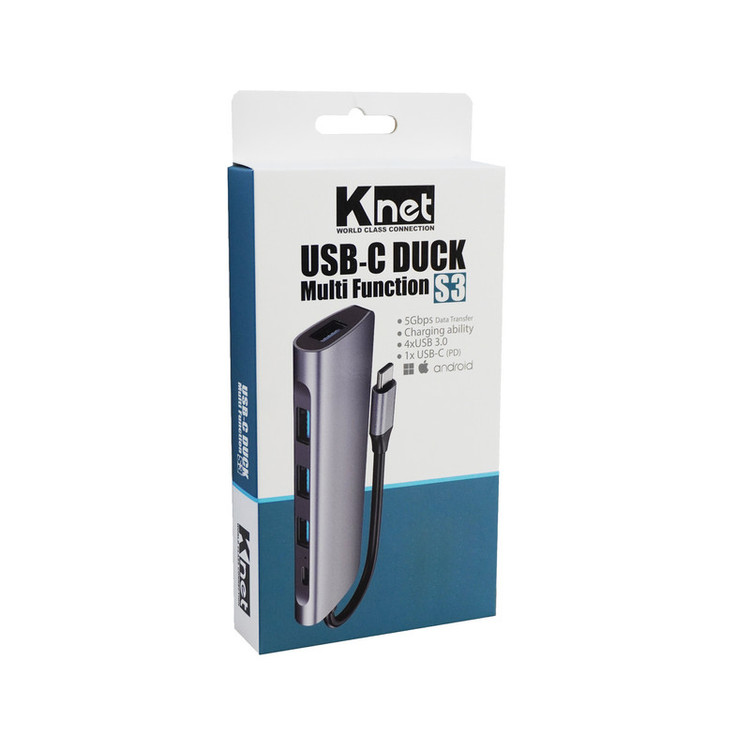 هاب 5 پورت تایپ سی مدل s3 برند کی نت (تبدیل چندکاره) دارای چهار عدد پورت USB3.0 ، یک عدد پورت Type C با فناوری PD می باشد . سرعت انتقال اطلاعات 5Gbps می باشد.